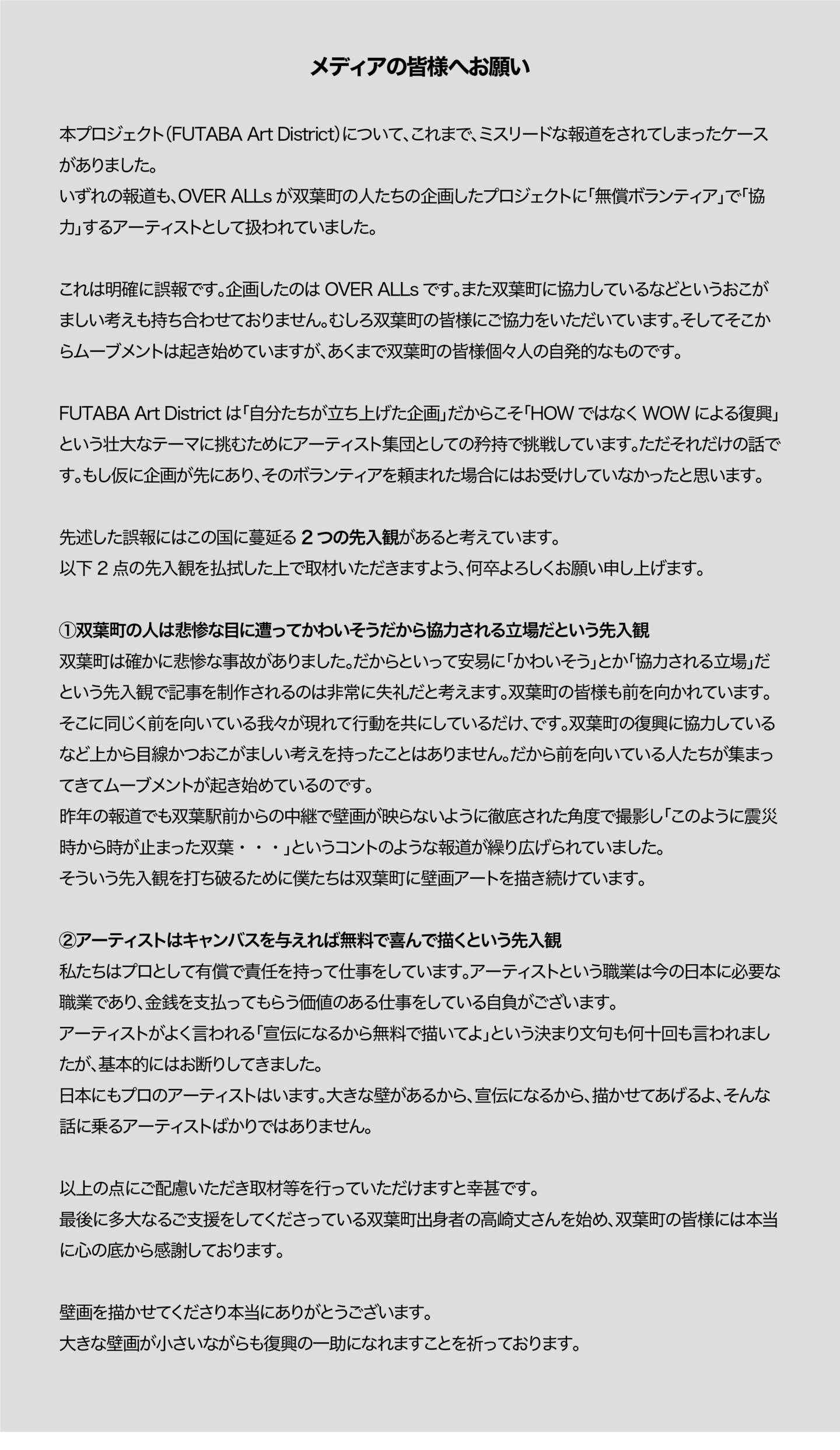 FUTABA Art District(双葉アートディストリクト)は完全に僕たちOVER ALLsのエゴでスタートしていたからです。