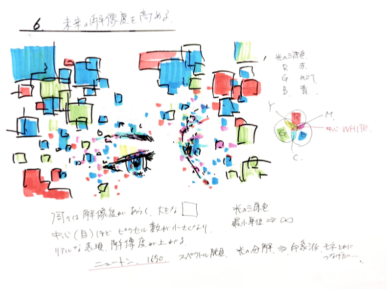 ピクセルで表現した目は、瞳に近づくにつれ解像度が上がっている。
