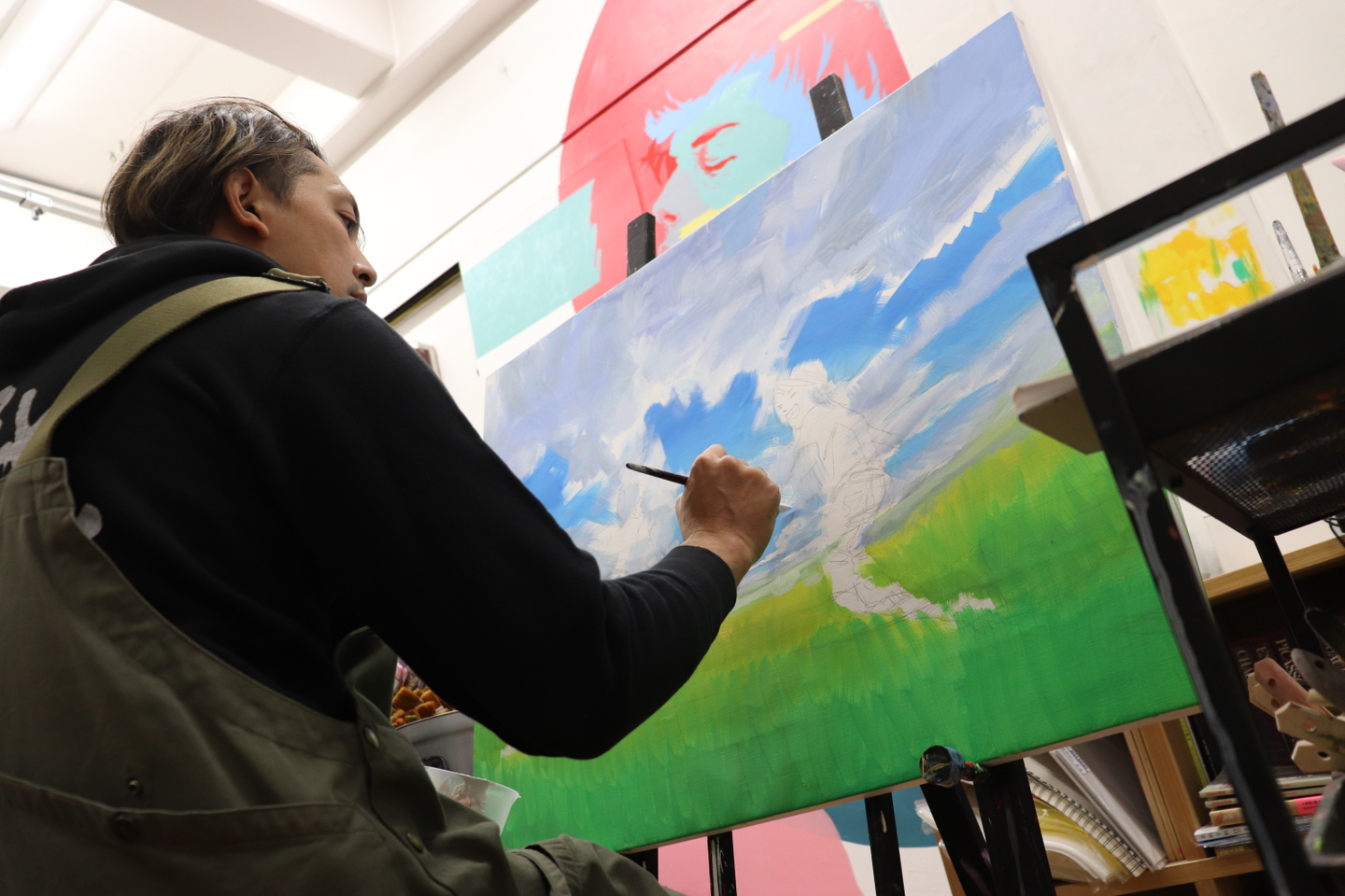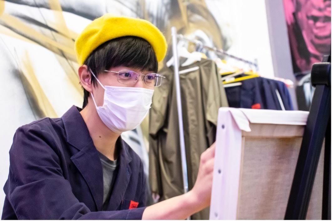 山本勇気が一つひとつキャンバスに絵を描いていった。
